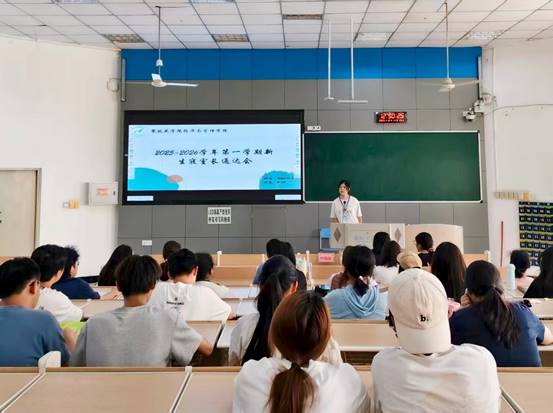 为进一步强化学生宿舍管理,提升生活服务质量。10月11日中午,经济与管理学院于尚学楼215召开2025级新生寝室长会议。经济管理学院2025级辅导员汪流露出席此次会议,分团委学生会部分成员以及2025级各班生活委员和寝室长参与其中。