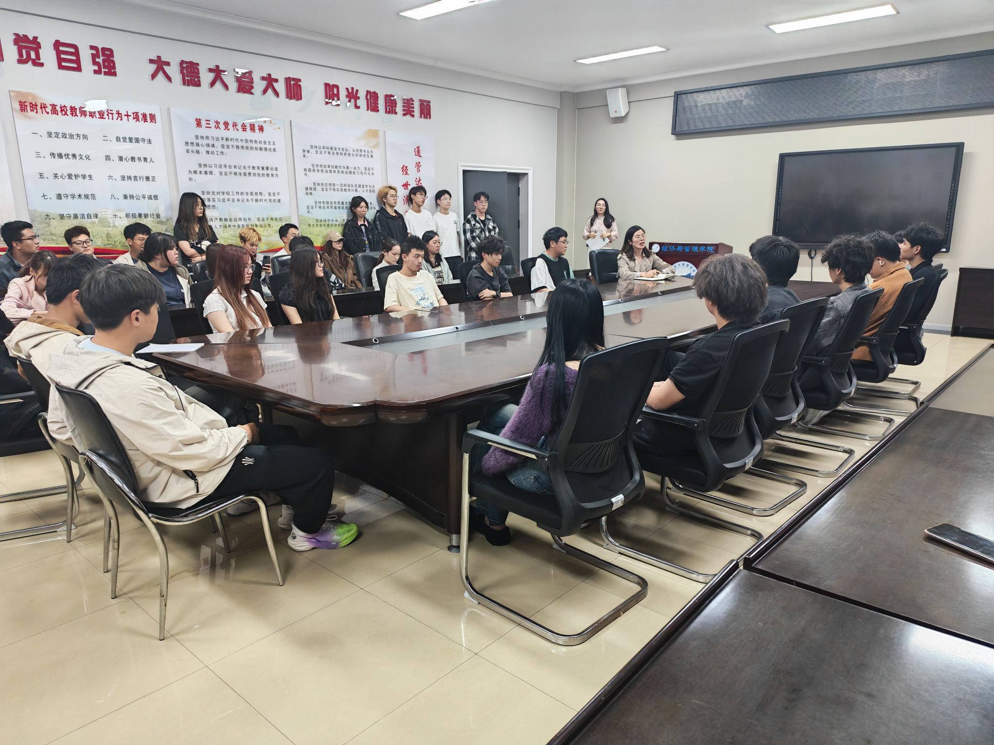 3月11日晚,经济与管理学院在明德楼经管会议室开展校友交流会。经济与管理学院2023级辅导员倪萍、2025级辅导员孙艳敏,以及2021级财务管理毕业生兰华凯出席本次活动,各年级学业预警学生参加。